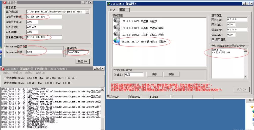 11.直到列表页配微端网关地址处,填写你的微端网关所在的电脑IP微端网关端口,填写微端网关上面的端口。参考上图然后生成登陆器,现在就可以正常更新,WIL、WZL、PAK格式补丁以及声音了(不想更新声音请将微端程序所在客户端内声音文件删除)接下来设置如何让PAK格式更新(Resources以配置器上配置的目录为准)比如:微端服务器上的客户端目录\热血传奇\Resources\data\ 那么玩家电脑上必须\Resources\data\目录 ,就可以正常更新了。