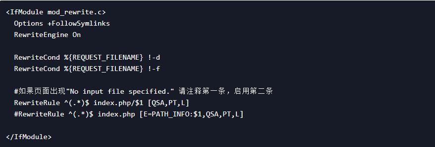 #如果页面出现"No input file specified." 请注释第一条,启用第二条,为什么同样是Apache服务器会有多种情况呢?