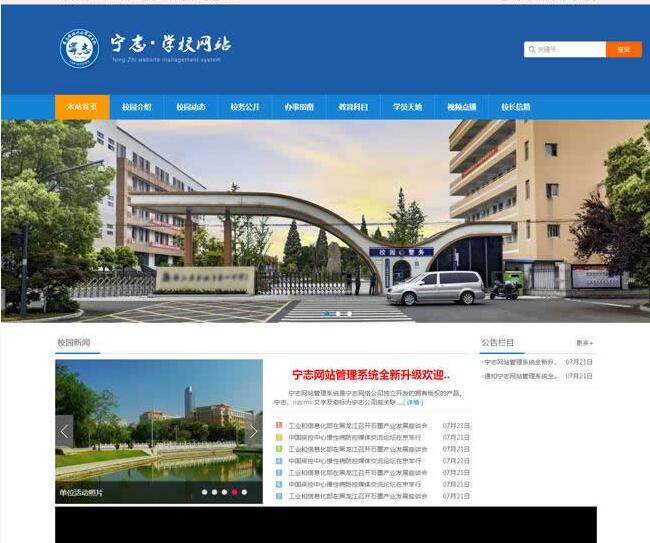 学校信息门户网站管理系统是一套专为学校/教育建站首选的信息网站管理系统,天蓝色风格宽频页面十分大方。