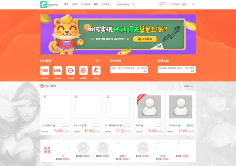 官网自营 源码模板 其他源码 2021-10-27 22:45:54 游戏陪玩系统/在线租号系统/小姐姐陪玩任务系统/网游主播任务威客平台源码/声优线上游戏任务系统网站源码_站长亲测 简介: 游戏陪玩系统/在线租号系统/小姐姐陪玩任务系统/网游主播任务威客平台源码/绝地吃鸡LOL在线下单/带手机端/声优线上游戏任务系统网站源码 界面美观,功能齐全,已对接支付,站长亲测可用_安装教程放源码压缩包里了!
