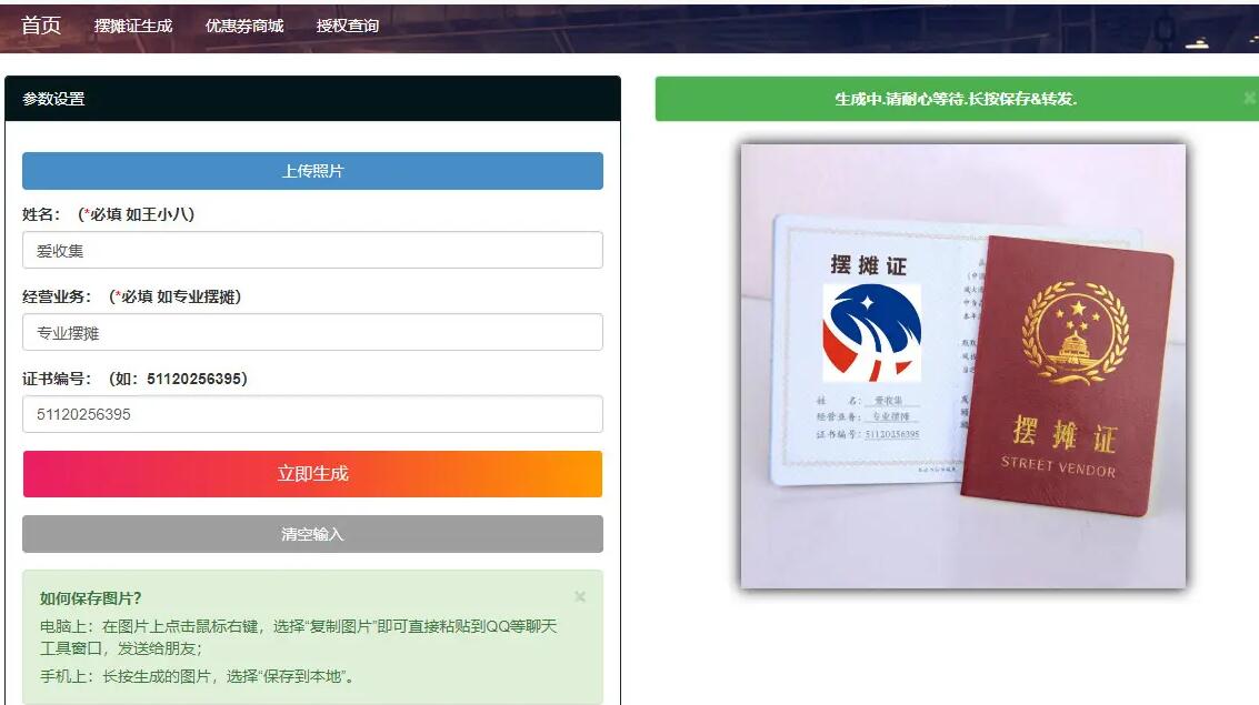 摆摊证书在线生成PHP源码