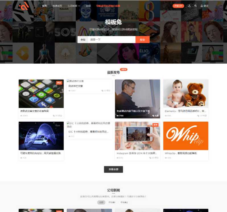 CMS式首页模板(显示多个分类板块,可子分类筛选)