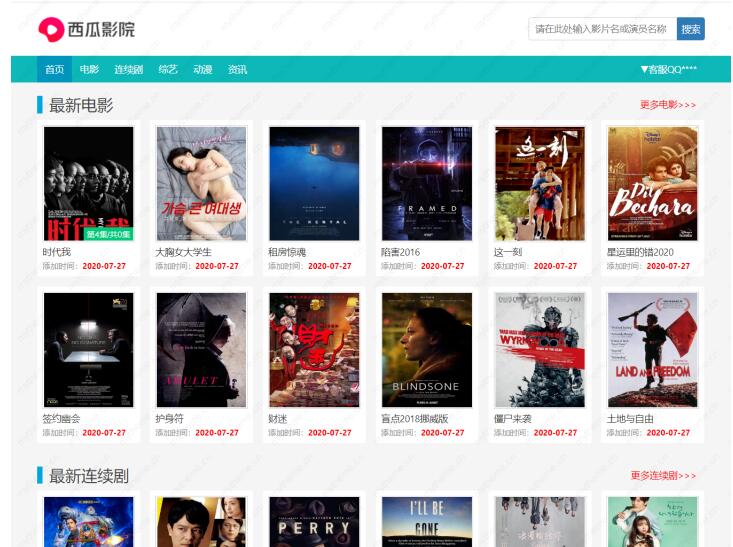 苹果cmsv10仿西瓜影院电脑手机影视自适应模板