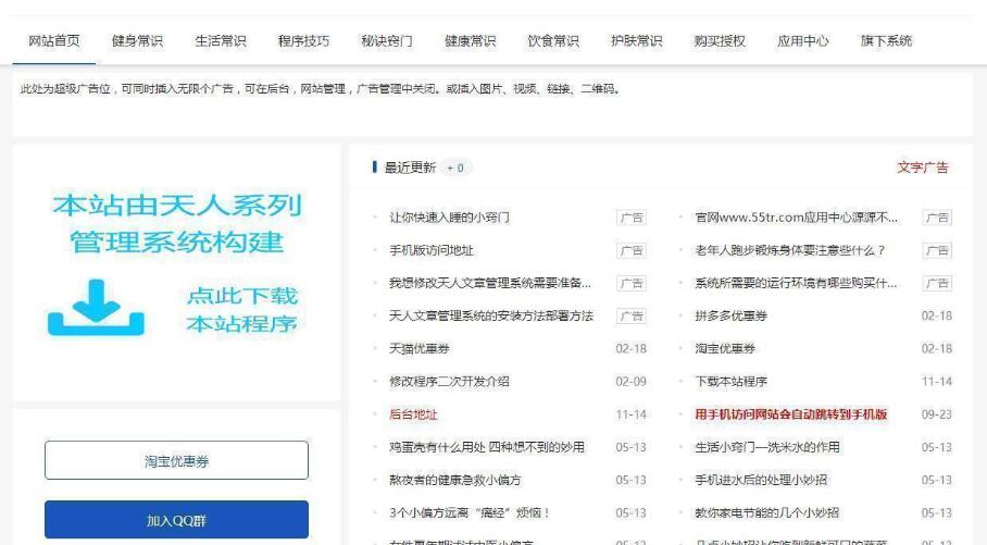 程序在完全自主知识产权,享有计算机软件著作权证书的天人文章管理系统的框架下开发,在天人文章管理系统的功能上新增了如下: