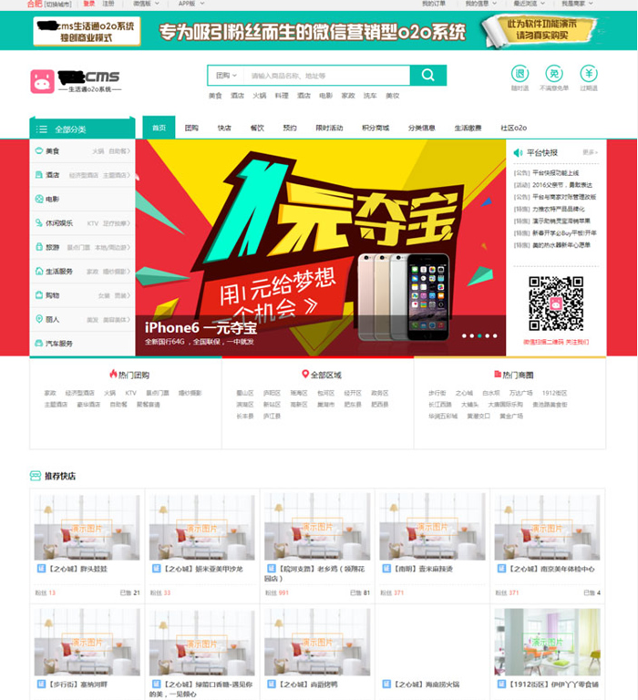 小猪CMS本地生活通O2O系统源码 多城市商业版V7.3