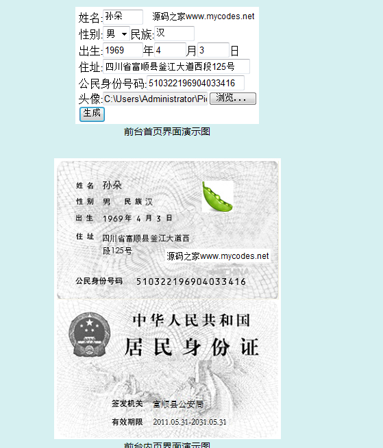 官网自营 源码模板 其他源码 2021-09-16 13:26:34 在线制作身份证复印件 1.0 在线制作身份证复印件,没设计界面,喜欢的可以自己设计,注意头像只能是gif格式,头像的背景用PS透明处理掉(方法:在PS里点魔术棒,然后点←键),可以做出来更真实的身份证复印件,非法程序,就不留名了